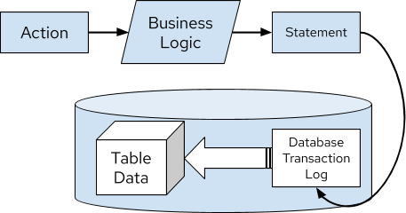 事实来源保留在应用程序数据库表和事务日志中