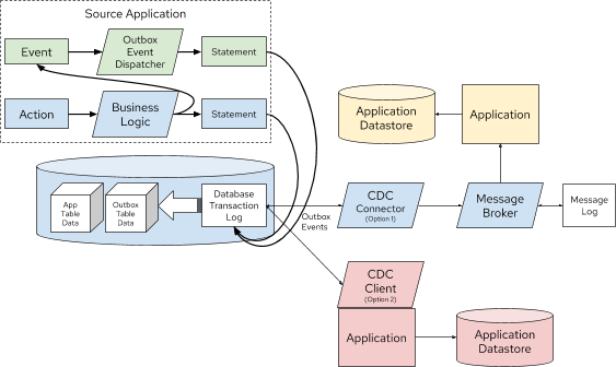 图 5. 使用 CDC 实现的 Outbox 模式(2 个选项)