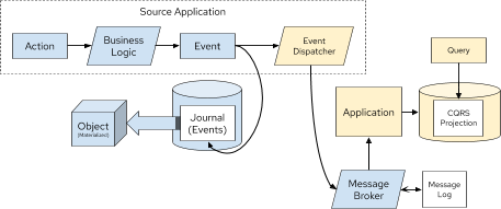 图 7. 使用消息代理的事件溯源与 CQRS 的表示