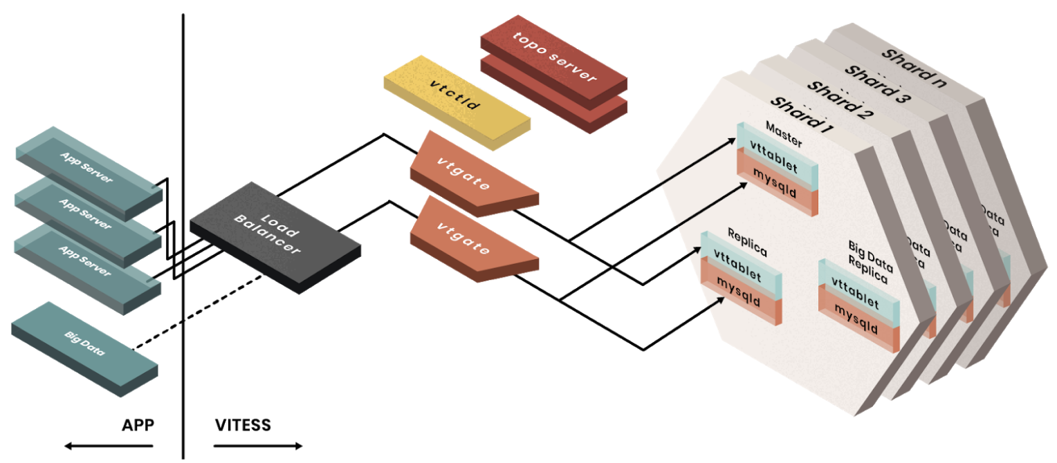 图 1. Vitess 架构。参考:https://www.planetscale.com/vitess