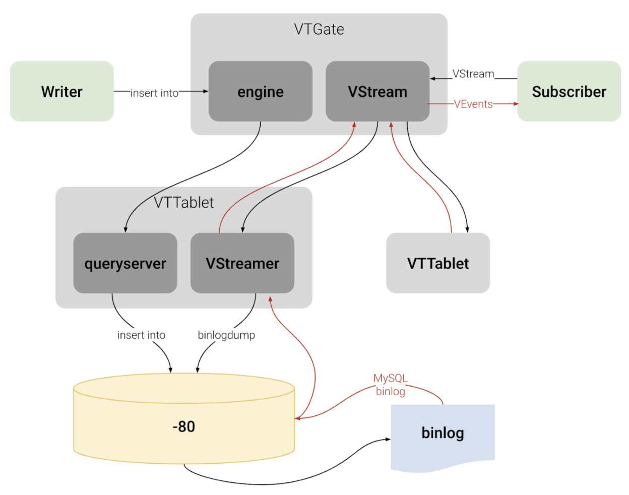 图 2. VStream 架构。参考:https://vitess.io/docs/concepts/vstream
