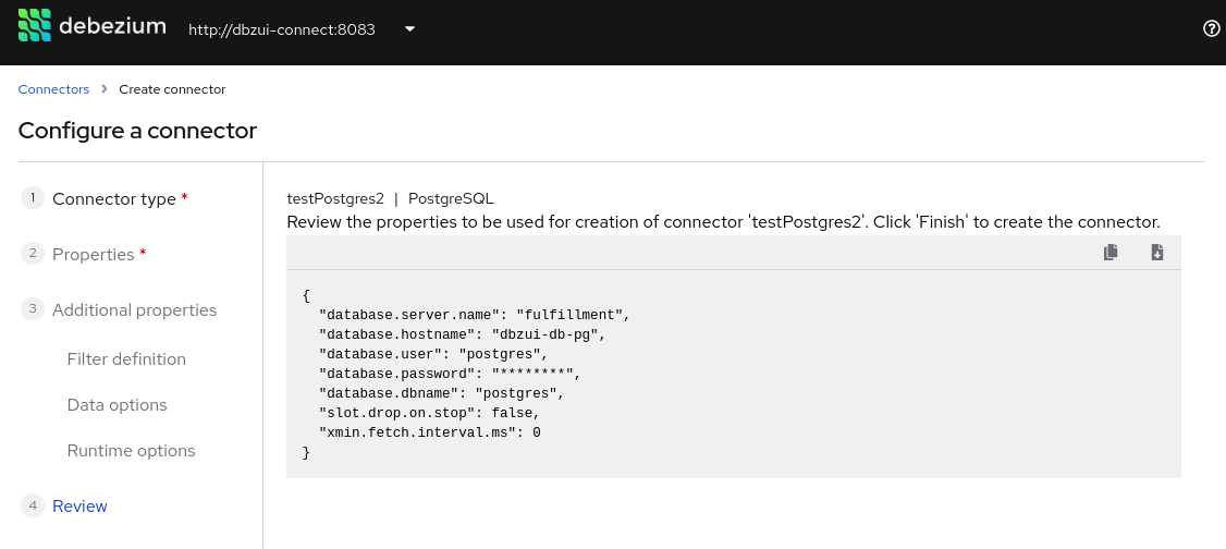 $ docker run -it --rm --name debezium-ui -p 8080:8080 -e KAFKA_CONNECT_URI=http://connect:8083 debezium/debezium-ui:1.7