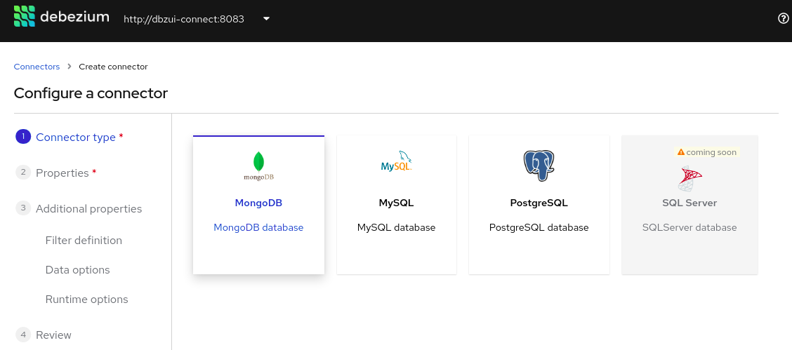 为此,我们推出了一个 UI,允许用户更轻松地设置和操作连接器。该 UI 现在是 Debezium 版本的一部分,可供我们的社区使用!